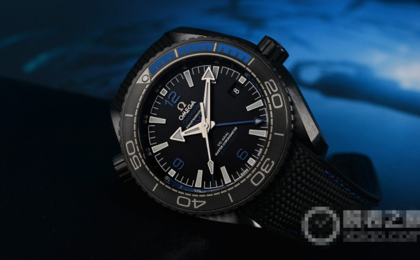 歐米海馬系列海洋宇宙「深海之黑」至臻天文臺GMT腕表(藍黑款)